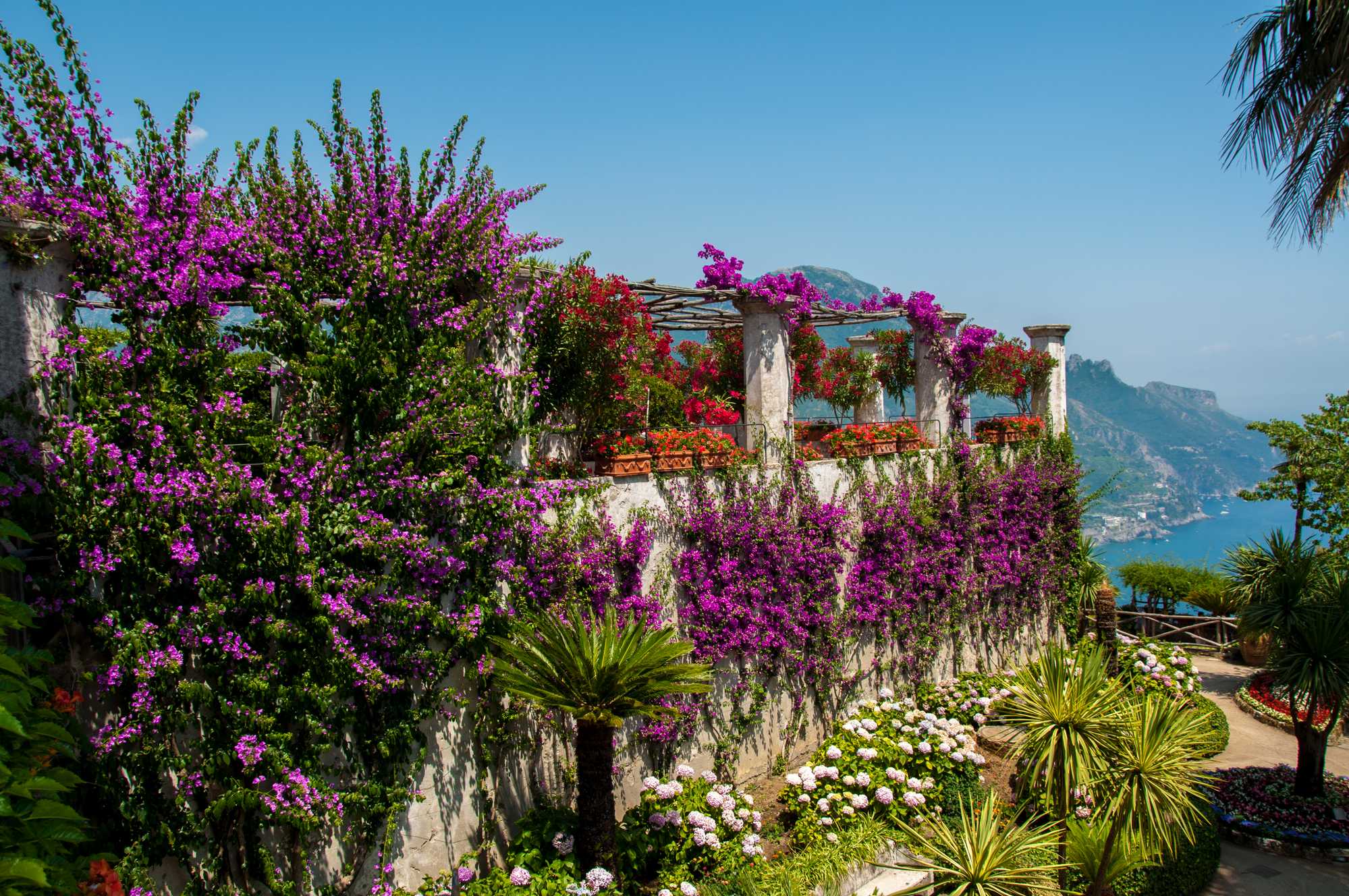 Sitting high atop a promontory that offers stunning views of the Mediterranean and the dramatic coastline below, the Villa Cimbrone is the crown laurel of Ravello.